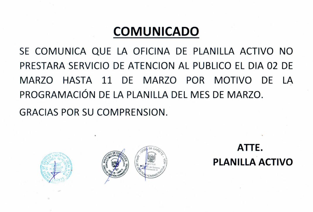Leer mas...OFICIO MULTIPLE 027-2026-DUGEL.08-CAÑETE/AGA/PERS Descargar Oficio: https://drive.google.com/file/d/1zcAefhfzcgMkNwGBwHL80b1wlKf1aC49/view?usp=sharing