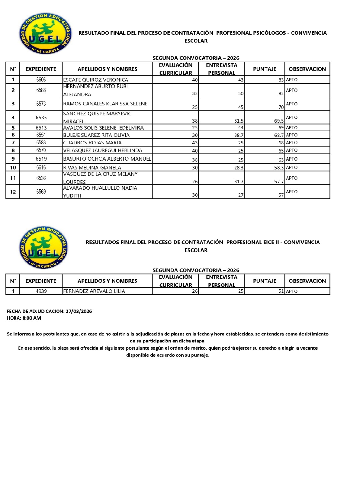 Vie, 27 de marzo, 2026 San Vicente Cañete.Se informa a los(as) directores(as) de las Instituciones Educativas Públicas de EBR, EBA, EBE y a las docentes coordinadoras de PRONOEI (Ciclo II) de la jurisdicción, lo siguiente: 📄 OFICIO MÚLTIPLE N.° 79-2026-UGEL 08-C/AGP 🔹 Asunto:Invocación a realizar la entrega y registro de materiales educativos a estudiantes y docentes. 📌 En el marco del Plan […]