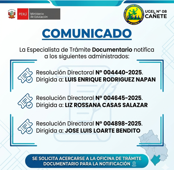 Jue, 16 de abril, 2026 San Vicente Cañete.La UGEL N.° 08 Cañete informa a la ciudadanía los resultados preliminares del segundo proceso de convocatoria CAS para el cargo de: 🏅 Técnico Deportivo CAS de Núcleo de la Iniciativa Pedagógica Wiñaq ✅ Se declara APTO al postulante:Palomino Solórzano Jhon Bladimir, con un puntaje total de 75 puntos. 📌 Importante:El acto público de adjudicación […]