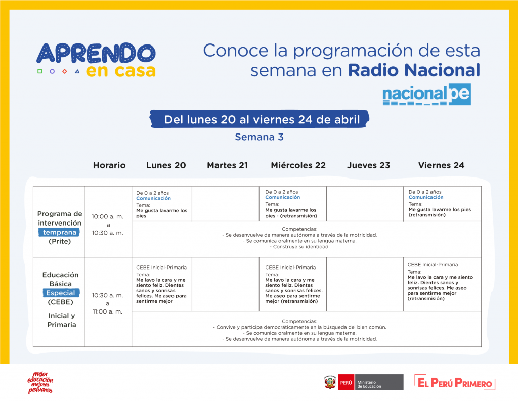 APRENDO EN CASA: PROGRAMACIÓN DEL LUNES 20 AL VIERNES 24 DE ABRIL EN RADIO NACIONAL