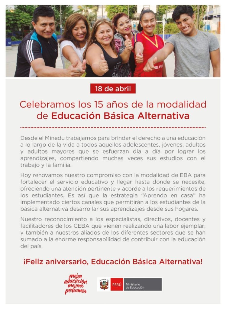 Sáb, 18 de abril del 2020, 9:09 AM por UGEL08C UGEL08CEBA: FORTALECIENDO Y LLEGANDO A DONDE SE NECESITE EL SERVICIO EDUCATIVO COMPARTIENDO CON LA FAMILIA Y EL TRABAJO