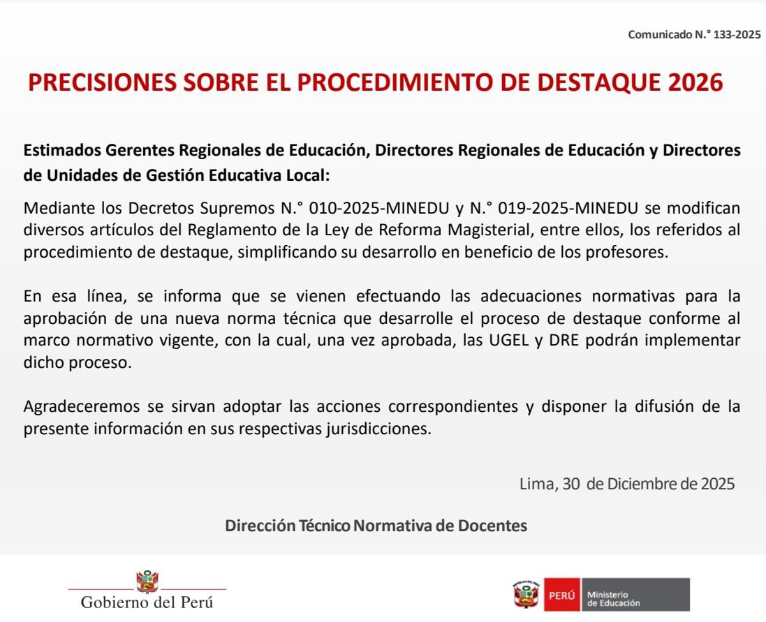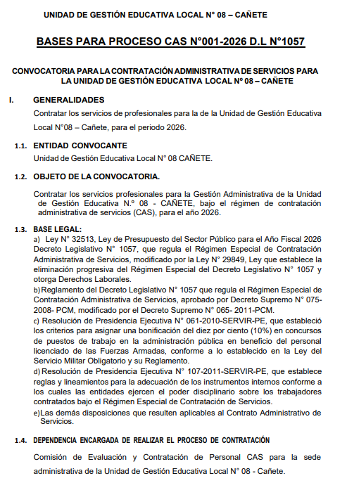 📢 COMUNICADO – PRIMERA CONVOCATORIA CAS 2026 📢