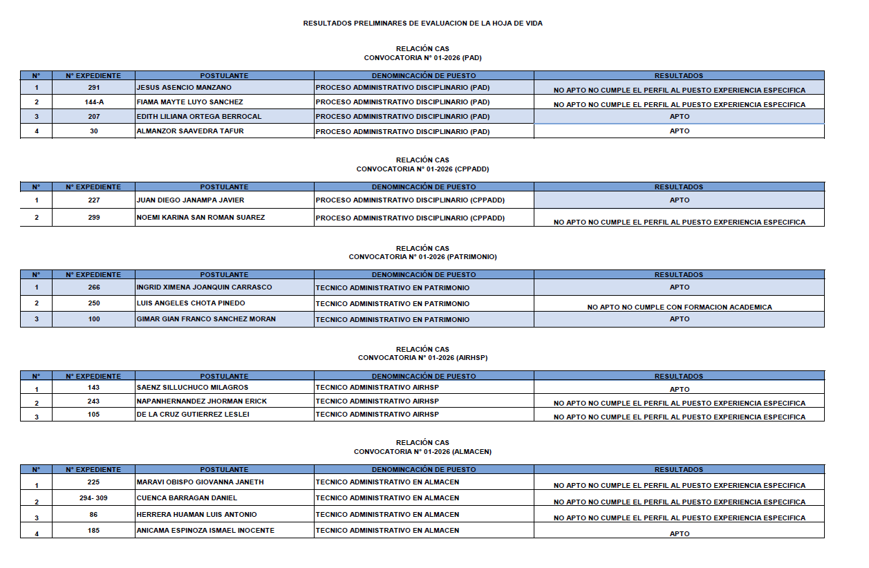 📢 COMUNICADO OFICIAL: RESULTADOS PRELIMINARES CAS N° 01-2026 📄