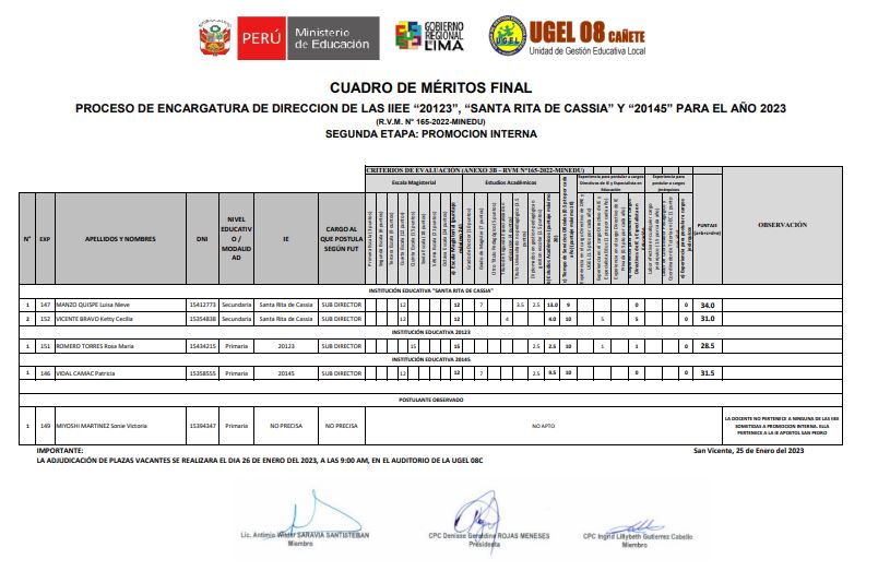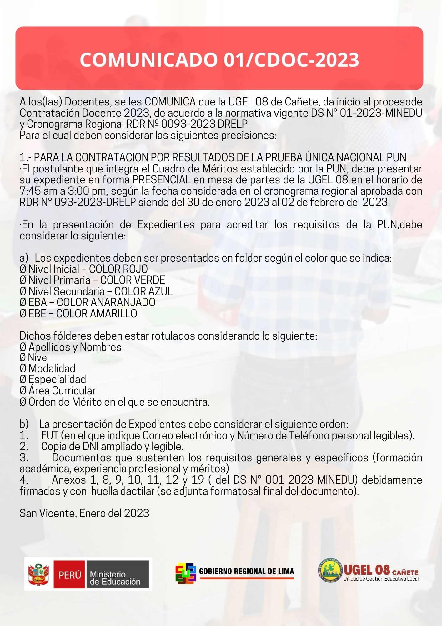 OFICIO MULTIPLE N°006-2023-DUGEL08-CAÑETE/J.AGP