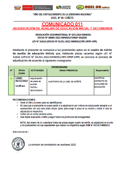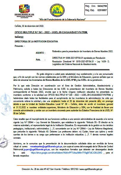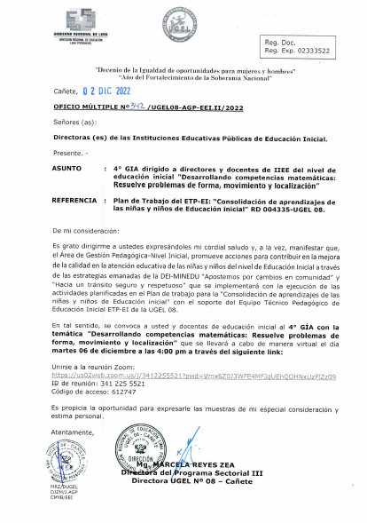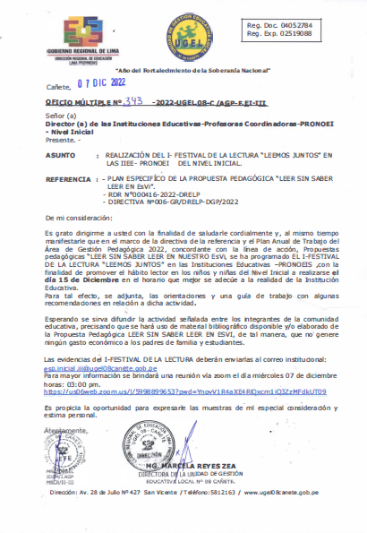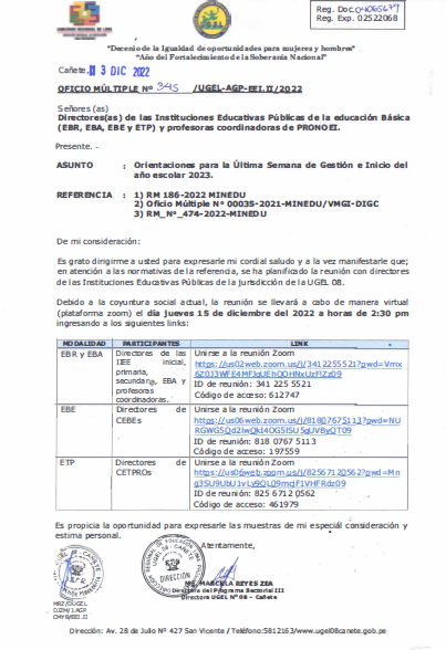 OFICIO MÚLTIPLE Nº 345-/UGEL-AGP-EEI.II/2022Orientaciones para la Última Semana de Gestión e Inicio del año escolar 2023.
