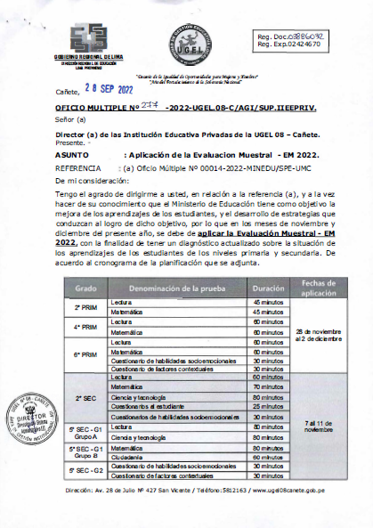 ATENCIÓN DIRECTORES/A DE LAS II.EE. PRIVADAS