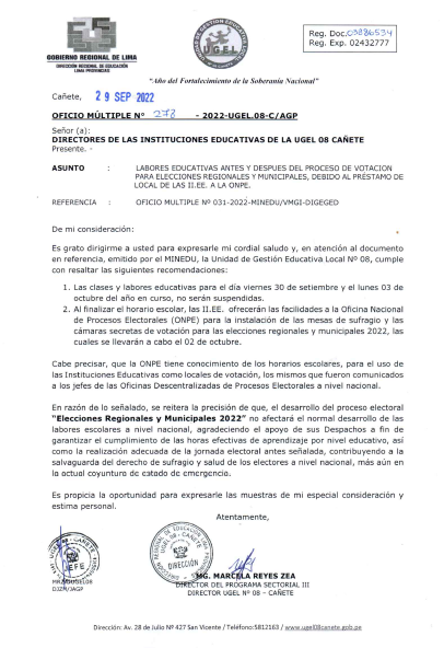 Vie, 30 de septiembre, 2022 San Vicente Cañete.A las II.EE. Privadas que no han realizado el autorreporte del PM31 tienen plazo hasta el 31 de octubre de realizar el PM49 del autorreporre en el SIMON
