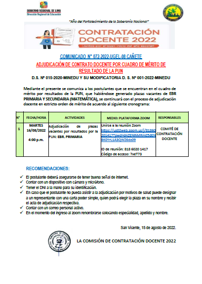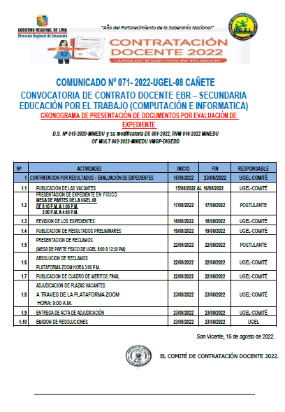 Mar, 16 de agosto, 2022 San Vicente Cañete.DESCARGAR https://drive.google.com/file/d/1BRoC4p2foBkRBEKIdH-7vmf3qHcoTSVO/view?usp=sharing