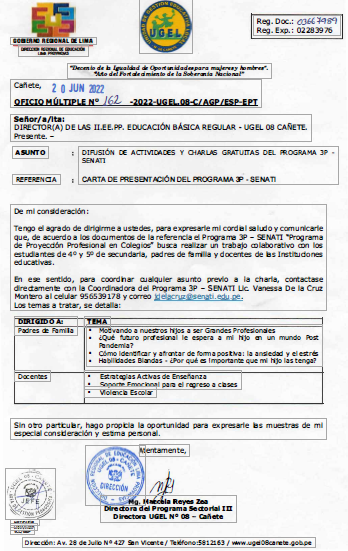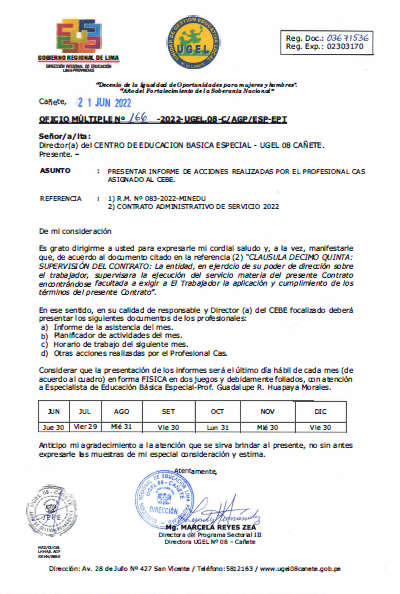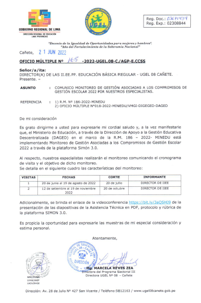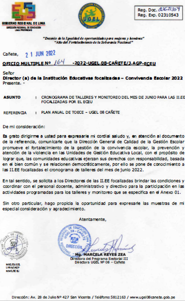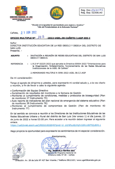 OFICIO MÚLTIPLE Nº 167-2022-UGEL 08 CAÑETE/J.AGP-EEI-INVITACIÓN A REUNIÓN DE REDES EDUCATIVAS DEL DISTRITO DE SAN LUIS 080013 Y 080014