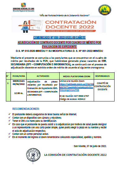 Leer mas...DESCARGAR COMUNICADO: https://drive.google.com/file/d/1zkBghZ37cb51v2oW_Km7yImzZ-Eswho4/view?usp=sharing