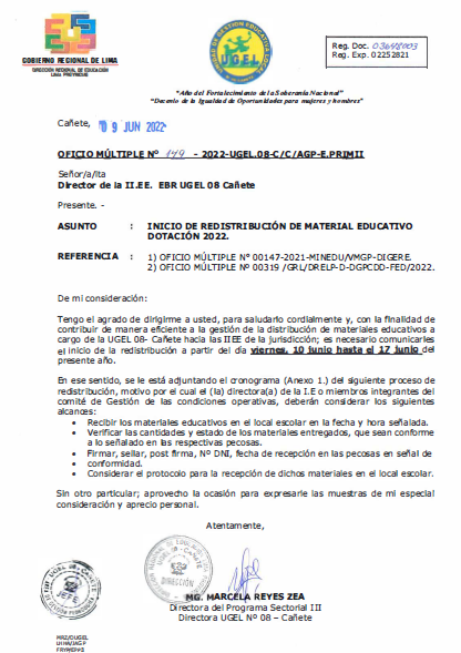 OFICIO MÚLTIPLE Nº 149-022-UGEL.08-C/C/AGP-E.PRIMII