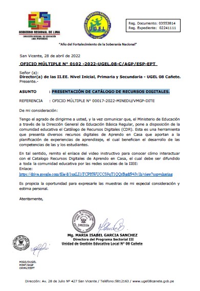 Mar, 3 de mayo, 2022 San Vicente Cañete.DESCARGA DE RESULTADOS https://drive.google.com/file/d/14n5rrG49DObKOBDPuIiq9tIHB7kntWqf/view?usp=sharing