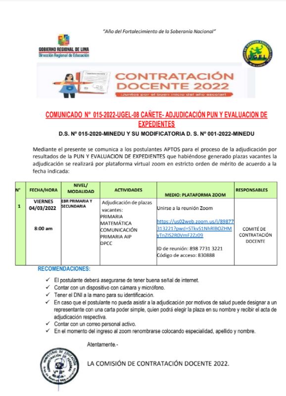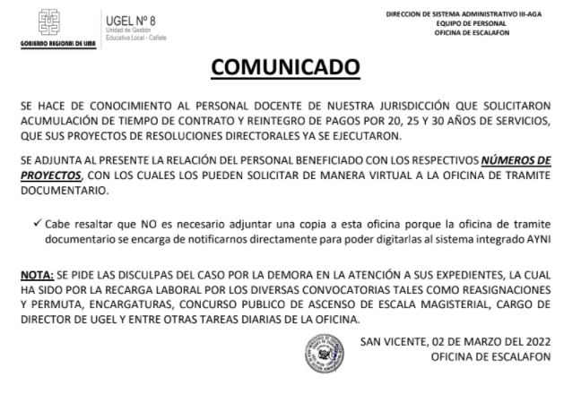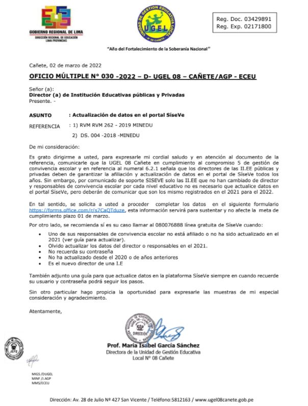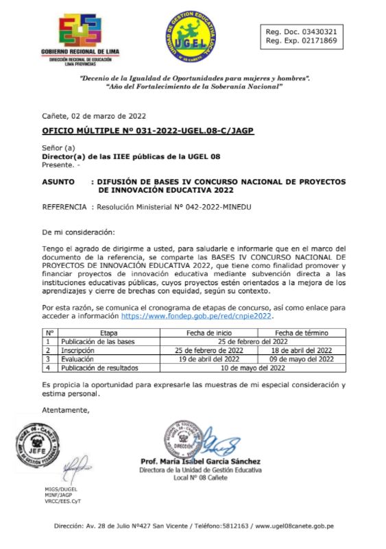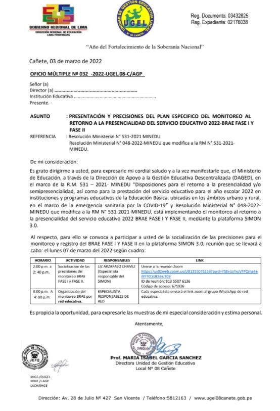 OFICIO MÚLTIPLE Nº 031-2022-UGEL.08-C/JAGP
