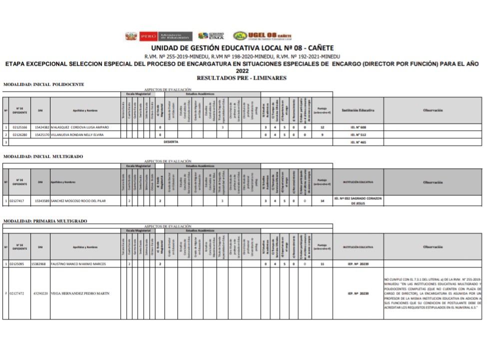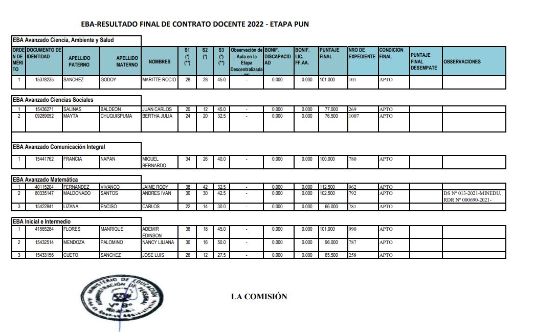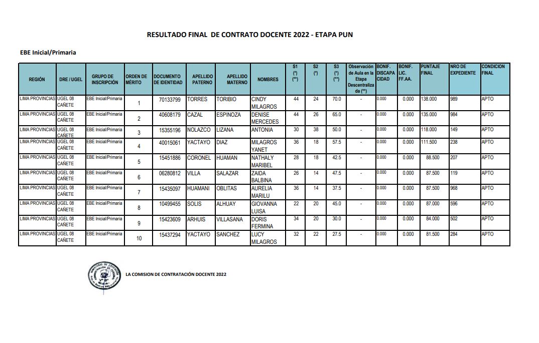 CONTRATO DOCENTE PUBLICACIÓN DE CUADRO DE MERITOS FINAL MODALIDAD EBE INICIAL/PRIMARIA
