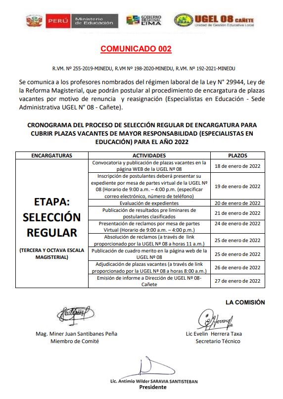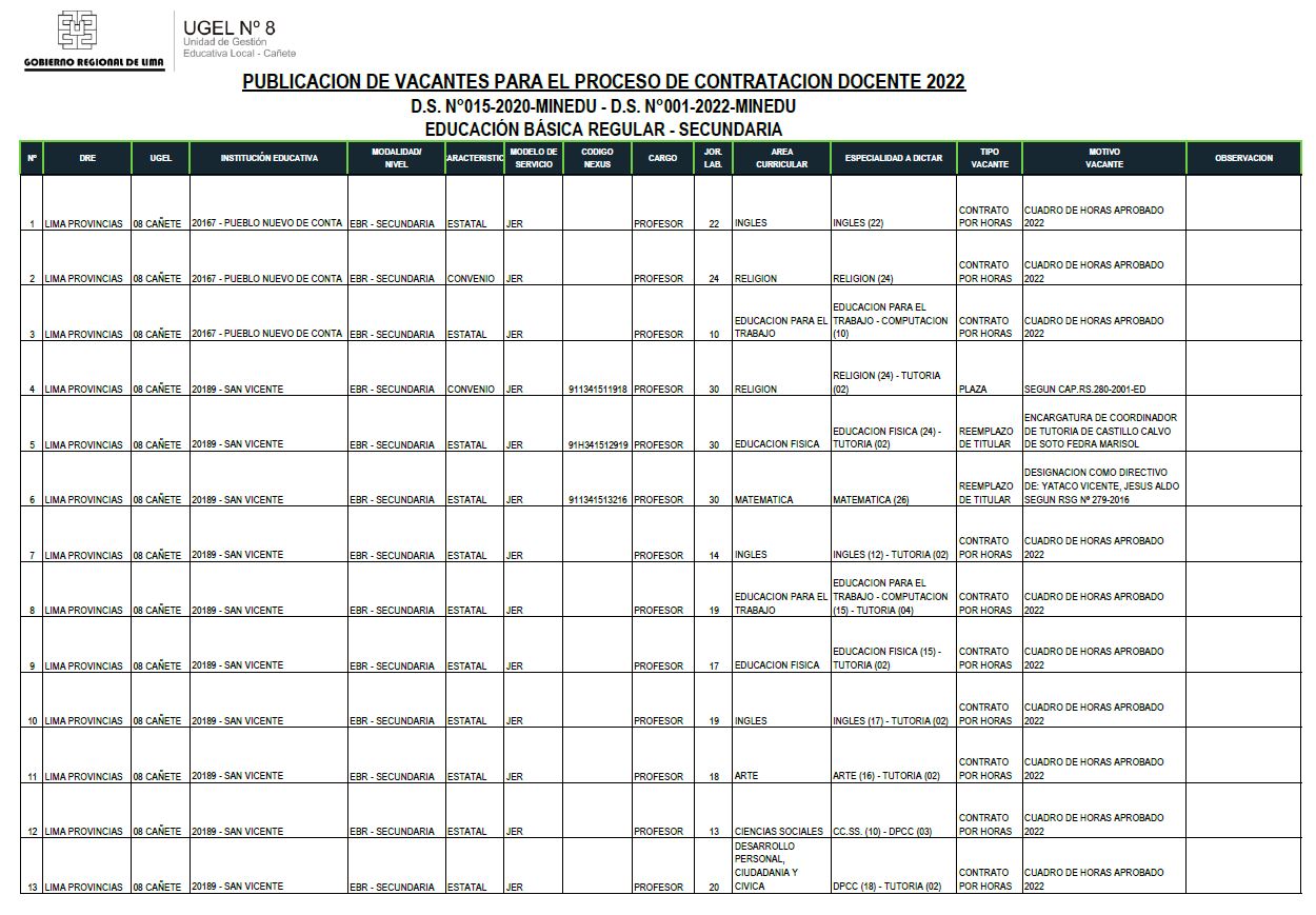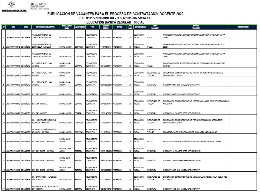 Leer mas...DESCARGAR COMUNICADO : https://drive.google.com/file/d/1OWoMEwKkR4I2b7T3LKr0_pQ6-8D5Fujp/view?usp=sharing DESCARGAR PLAZAS : https://drive.google.com/file/d/1OYWd5wdbnbCJTG7WXQq5D3VNFurB-ri3/view?usp=sharing