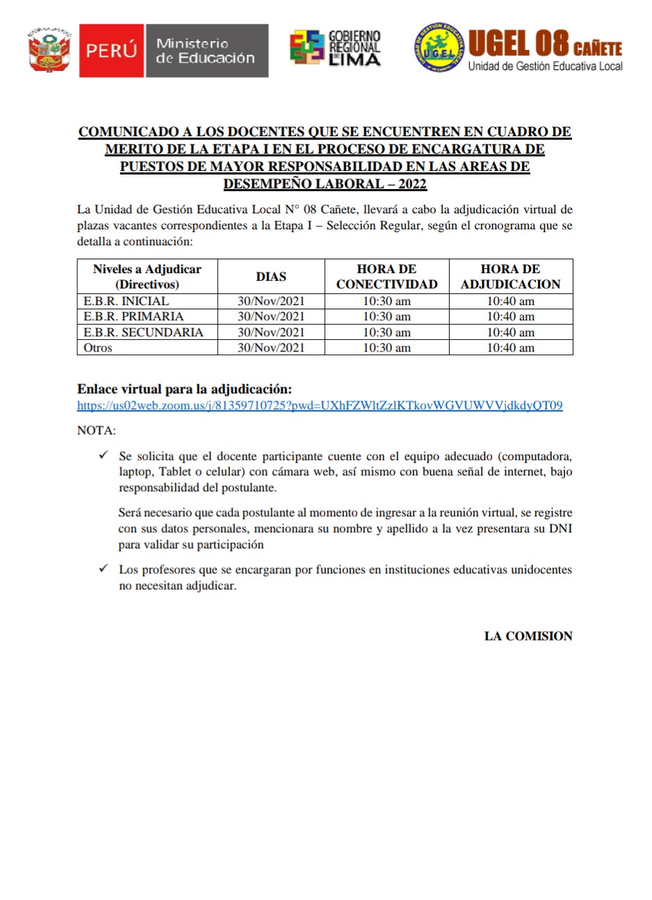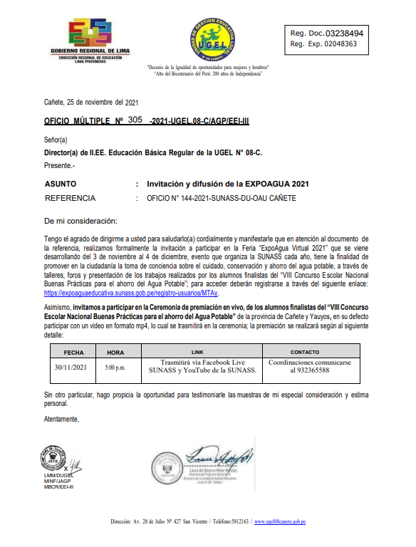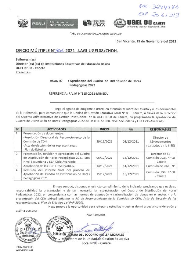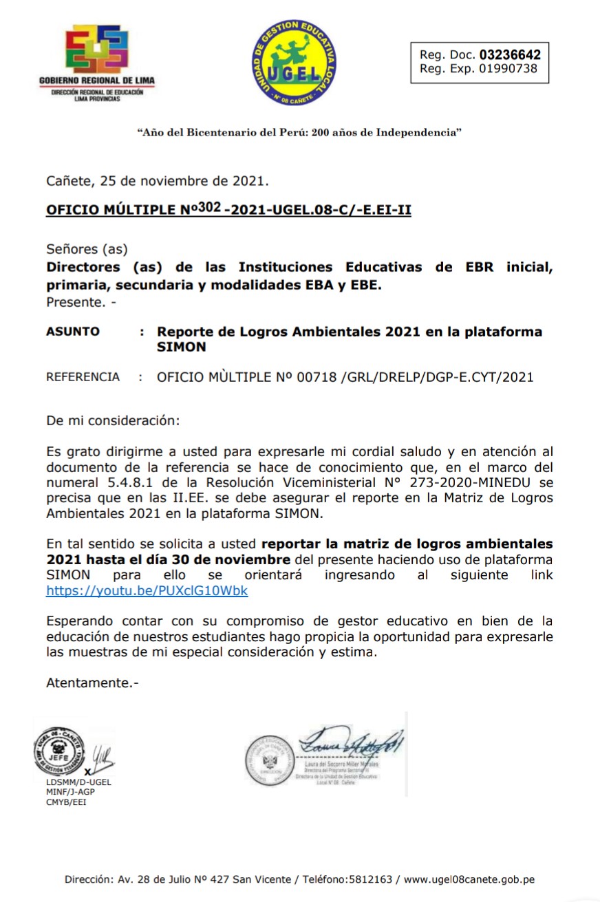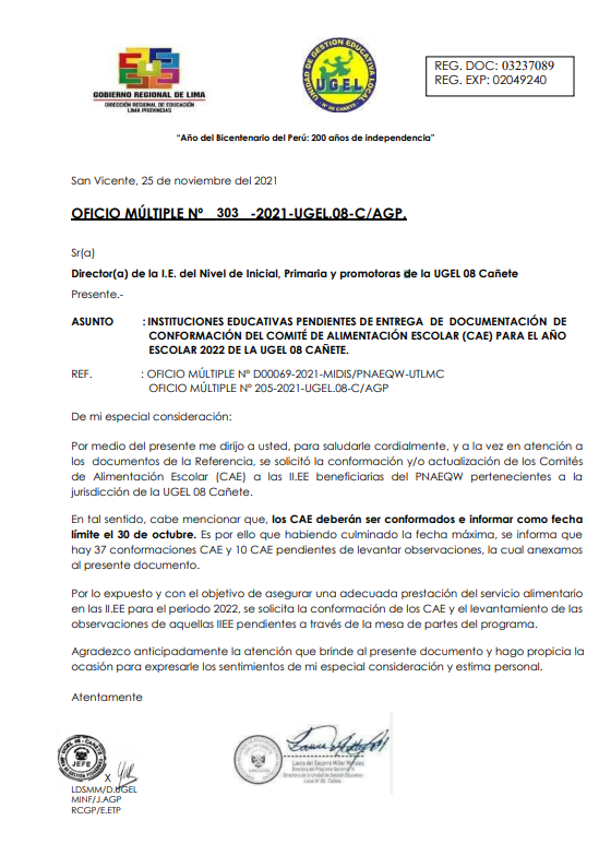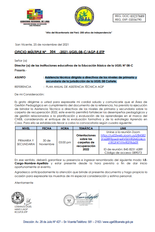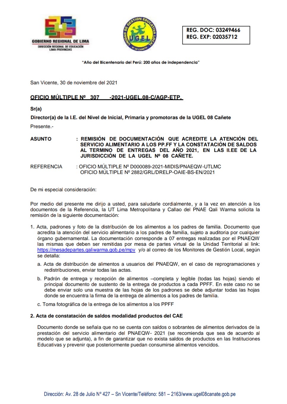 OFICIO MÚLTIPLE Nº 307 -2021-UGEL.08-C/AGP-ETP.