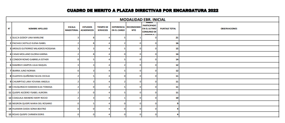 CUADRO DE MERITO A PLAZAS DIRECTIVAS POR ENCARGATURA 2022