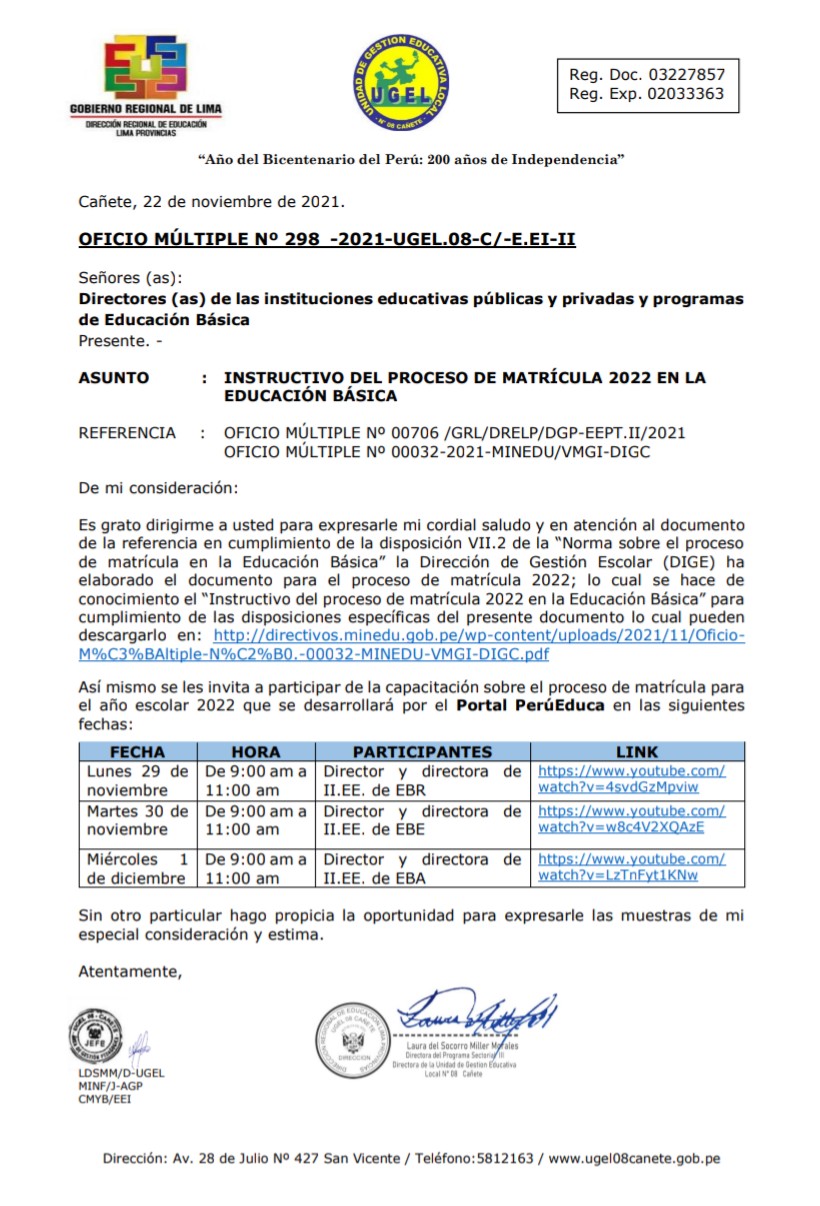 OFICIO MÚLTIPLE Nº 299 -2021-UGEL.08-C/AGP-EEP-II