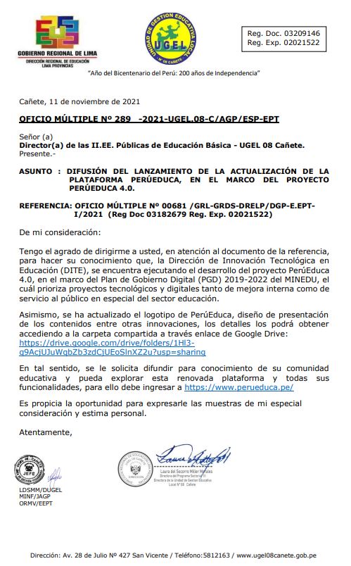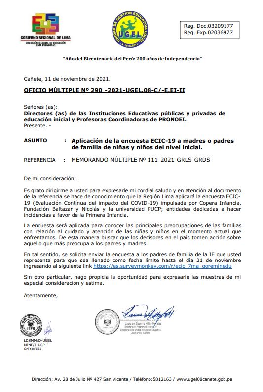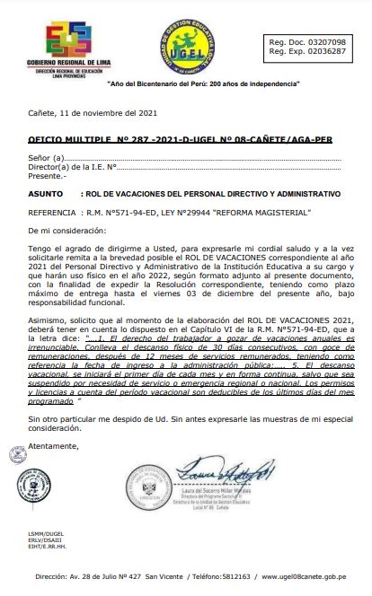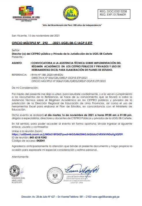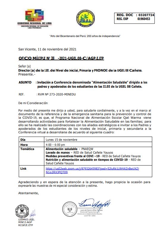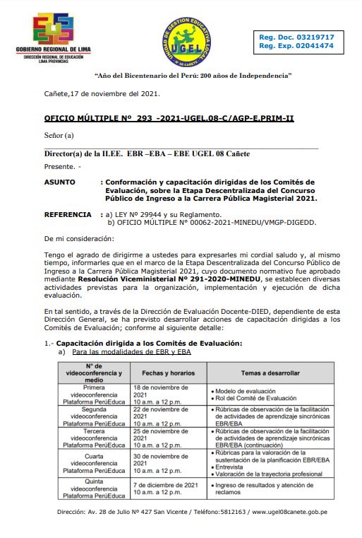OFICIO MÚLTIPLE Nº 293 -2021-UGEL.08-C/AGP-E.PRIM-II