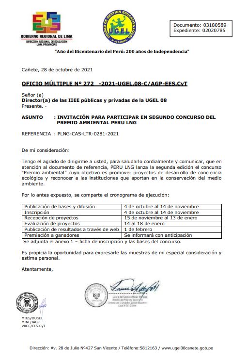 OFICIO MÚLTIPLE Nº 273 -2021-UGEL.08-C/AGP-E.EI-II