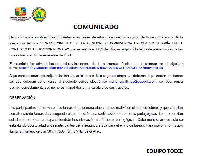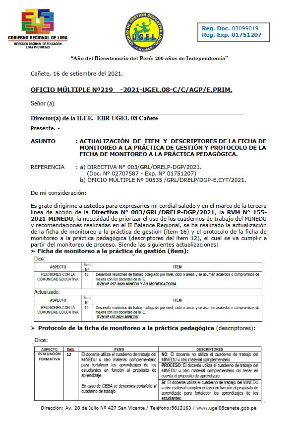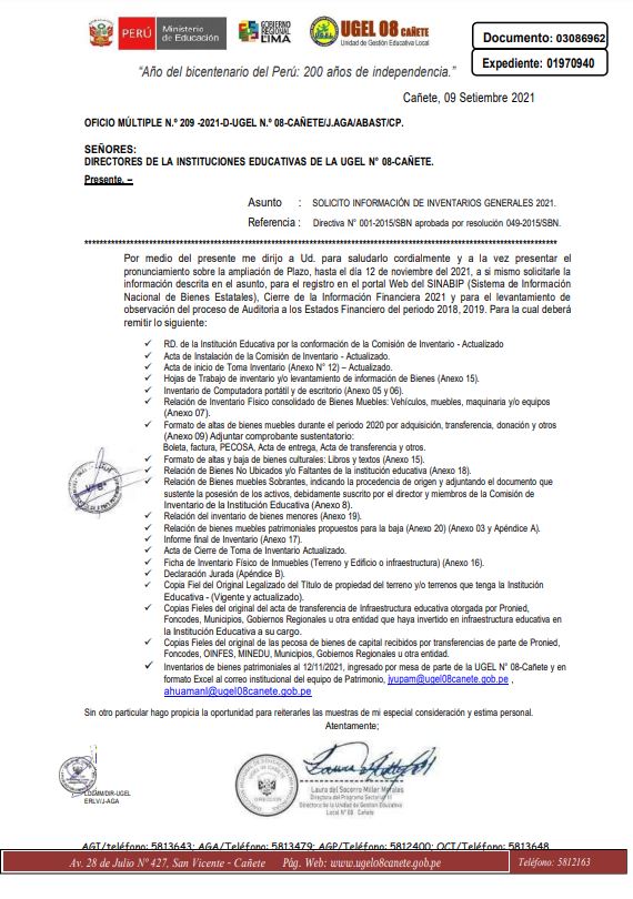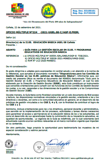 OFICIO MÚLTIPLE Nº 225 -2021-UGEL.08-C/AGP.E.ETP