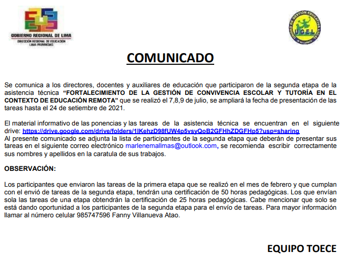 Leer mas...DESCARGAR COMUNICADO: https://drive.google.com/file/d/1_va638XEkqWK-1isyawZqvsQc0UUJhr9/view?usp=sharing