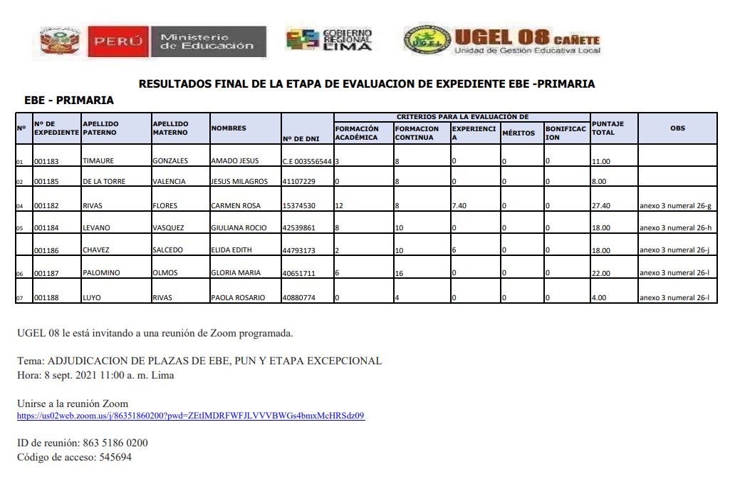 Leer mas...DESCARGAR RESULTADOS: https://drive.google.com/file/d/17nX73thcfNJMJl4JyFDXowEvE9zLsQfy/view?usp=sharing