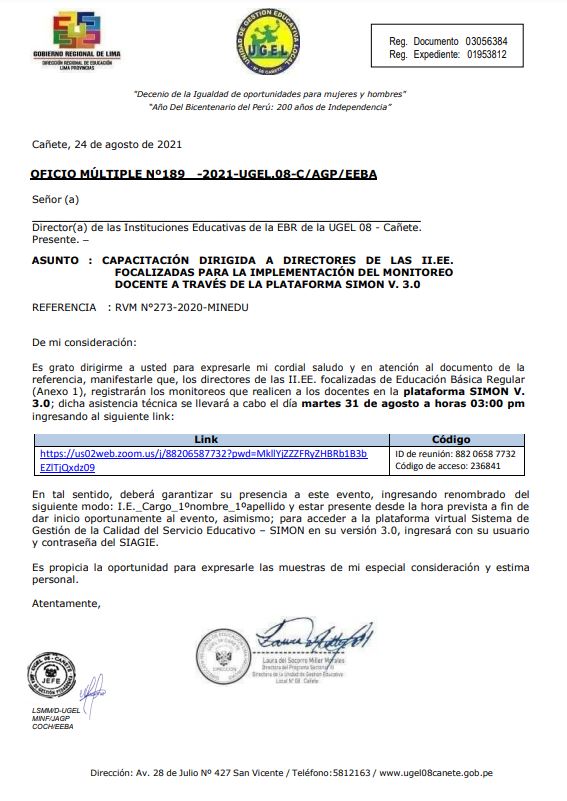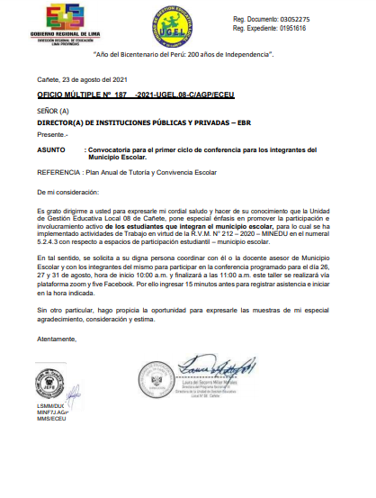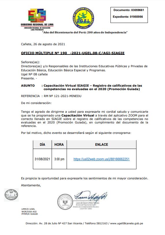 Jue, 26 de agosto, 2021 San Vicente Cañete.DESCARGAR FE DE ERRATAS: https://drive.google.com/file/d/1wLR847s1DWGberP0g-y-XMo_ecEk0MJ6/view?usp=sharing