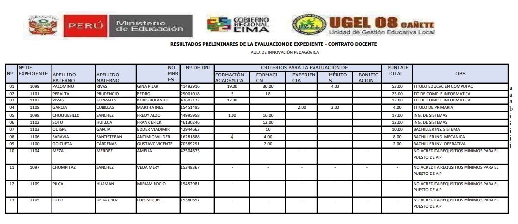 Leer mas...DESCARGAR RESULTADOS: https://drive.google.com/file/d/1egGRoyUYmyiP_4oGSvZO7qB29YYYASZV/view?usp=sharing