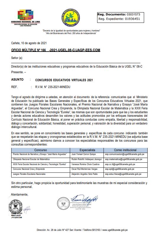 Leer mas...CONCURSOS EDUCATIVOS VIRTUALES 2021 DESCARGAR OFICIO: https://drive.google.com/file/d/1gb7fNx9CHAoxy9iV7i_LUKG-Ho9FgWZx/view?usp=sharing