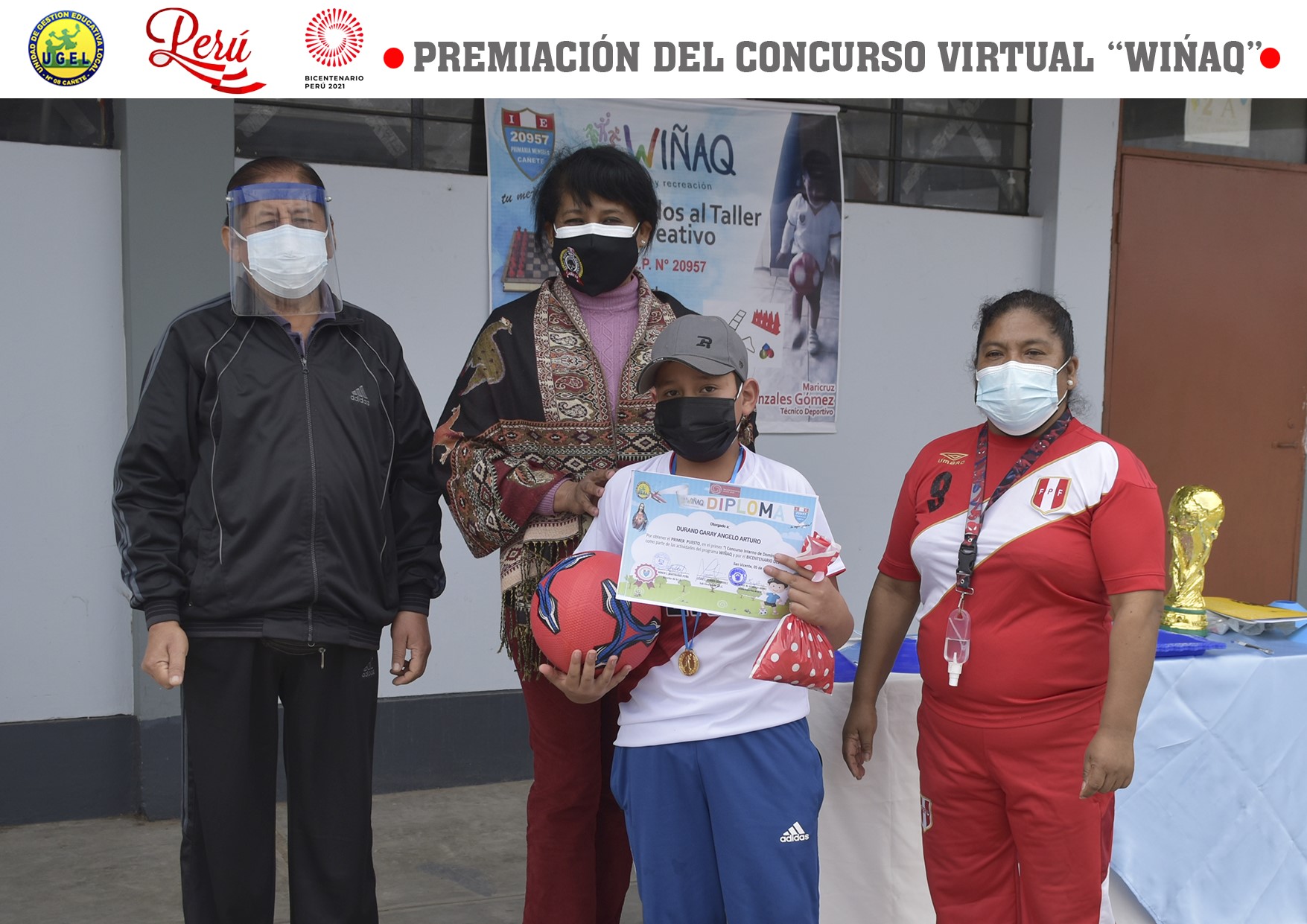 Leer mas...Alumnos que resultaron ganadores del Primer Concurso Virtual del globo pelotero y dominio del balón, de la Institución Educativa N° 20957 – Sepúlveda de menores; fueron premiados en una ceremonia presencial que contó con la presencia de la directora de la Ugel 08 de Cañete, Laura Miller Morales.