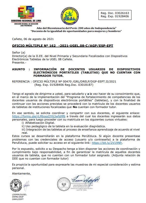 Leer mas...INFORMACIÓN DE DOCENTES USUARIOS DE DISPOSITIVOS ELECTRÓNICOS PORTÁTILES (TABLETAS) QUE NO CUENTAN CON FORMADOR TUTOR. DESCARGAR OFICIO: https://drive.google.com/file/d/1GHB4inYfzVJaZ0eZXXEOCxT8PIgUp2_T/view?usp=sharing