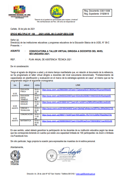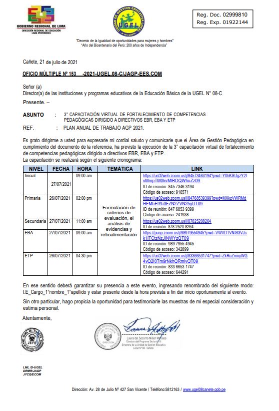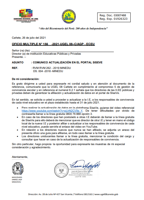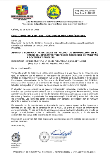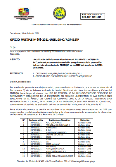 Lun, 2 de agosto, 2021 San Vicente Cañete.Cientos de docentes de las zonas rurales acudieron este fin de semana hasta la institución educativa No. 20957 (Sepúlveda de menores) de San Vicente, para recibir la segunda dosis de la vacuna contra la Covid 19. Laura Miller Morales, directora de la Ugel 08 de Cañete, siguió de cerca el proceso de inmunización a los […]