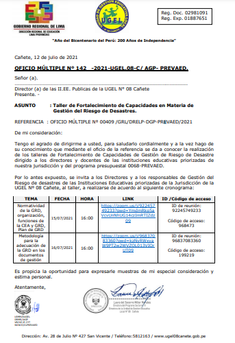 OFICIO MÚLTIPLE Nº 148 -2021-UGEL.08-C/JAGP-EES.COM