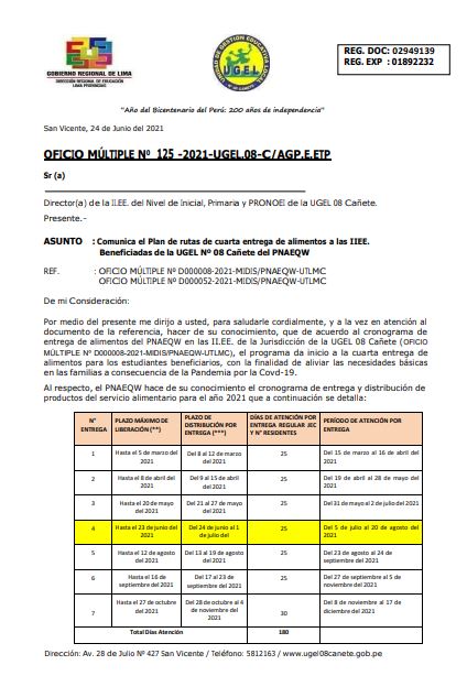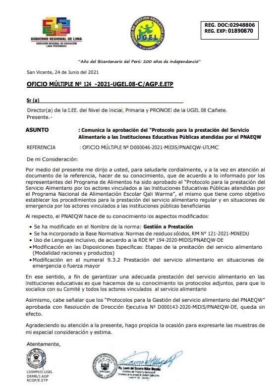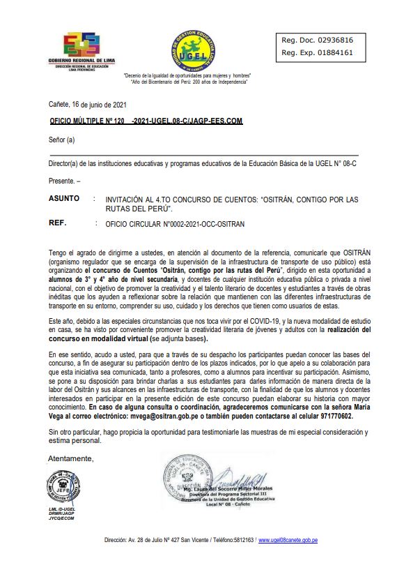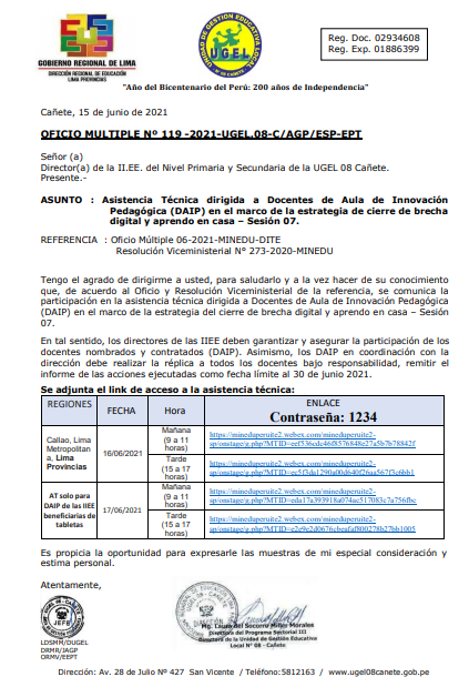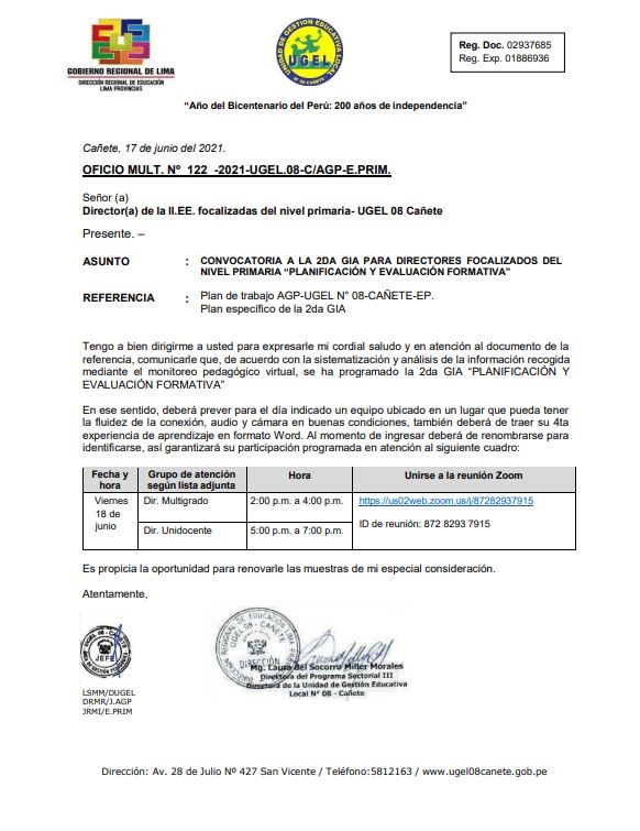 OFICIO MULTIPLE Nº 127 -2021-UGEL.08-C/AGP E. CCSS