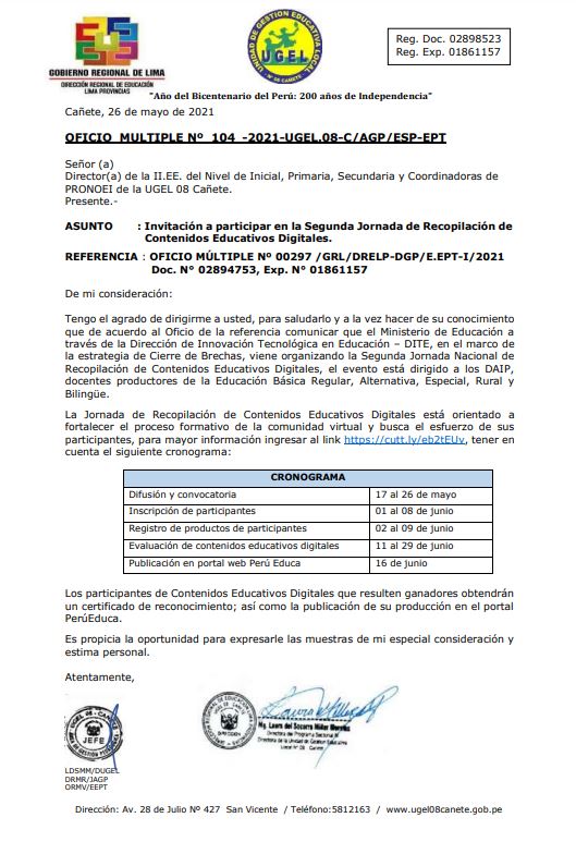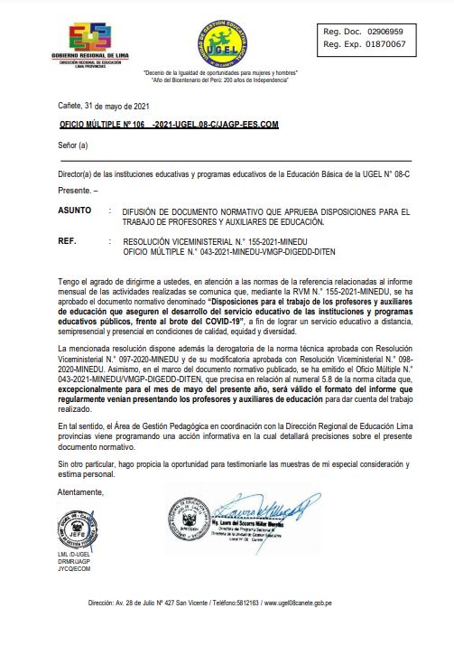 OFICIO MÚLTIPLE Nº 106 -2021-UGEL.08-C/JAGP-EES.COM