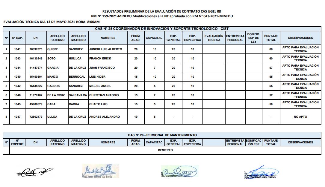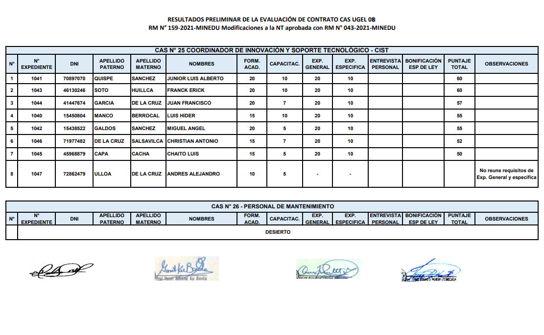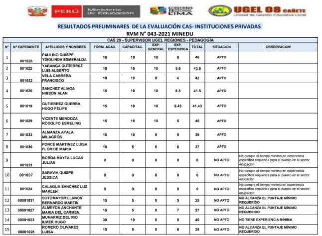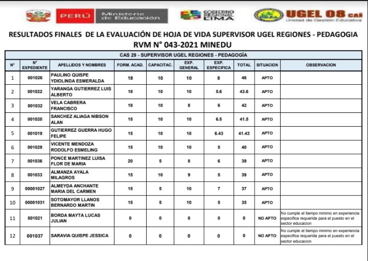 RESULTADOS FINALES DE LA EVALUACIÓN DE HOJA DE VIDA SUPERVISOR UGEL REGIONES – PEDAGÓGICA RVM N° 043-2021 MINEDU