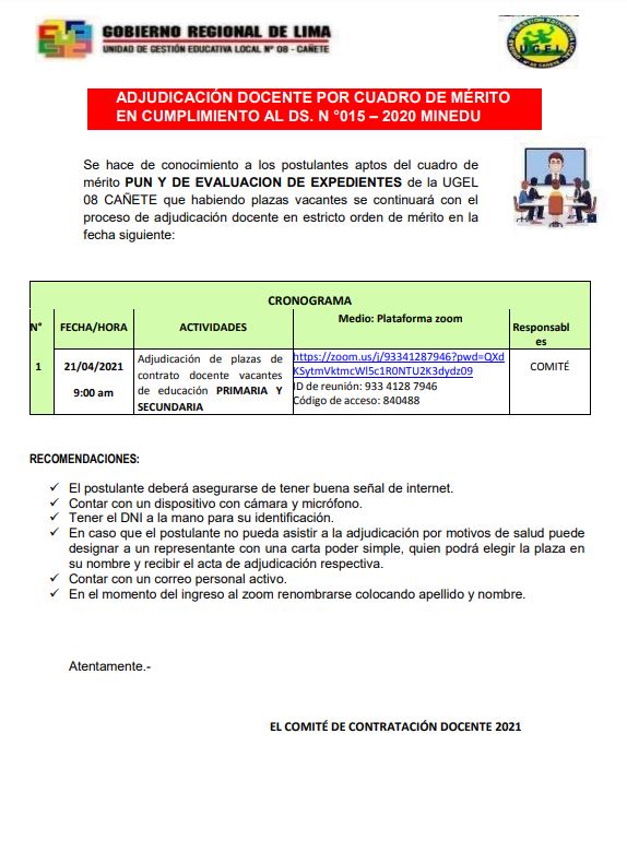 Leer mas...DESCARGAR COMUNICADO: https://drive.google.com/file/d/1JJU9Jyli99lU8RqgeZeG8U9GaSSSRybY/view?usp=sharing DESCARGAR CUADRO DE MERITO:https://drive.google.com/file/d/1_D_vmXSKNrP8Q89CTyO7AHyGXEhGNvaq/view?usp=sharing