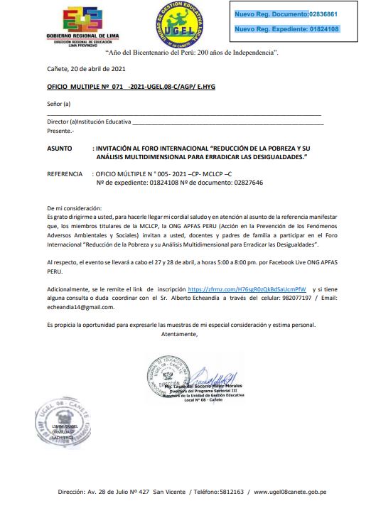 Leer mas...: INVITACIÓN AL FORO INTERNACIONAL “REDUCCIÓN DE LA POBREZA Y SU ANÁLISIS MULTIDIMENSIONAL PARA ERRADICAR LAS DESIGUALDADES.” DESCARGAR OFICIO: https://drive.google.com/file/d/1zm7B4xRwRaJ54srXLAZSa1ubh3EN1NoW/view?usp=sharing