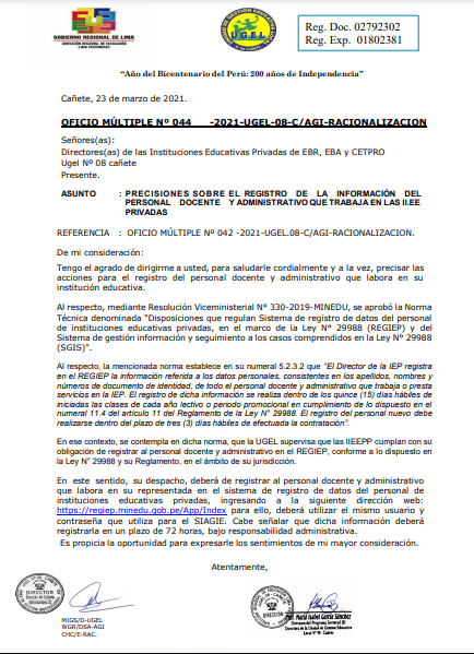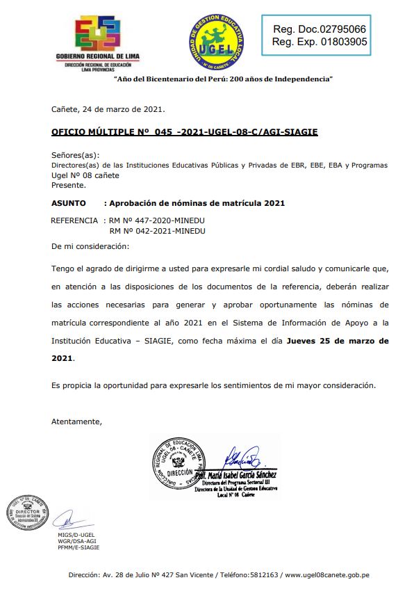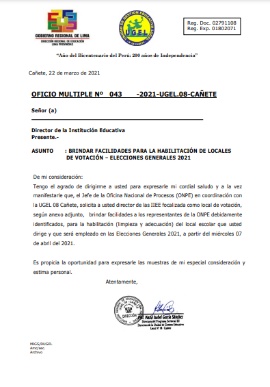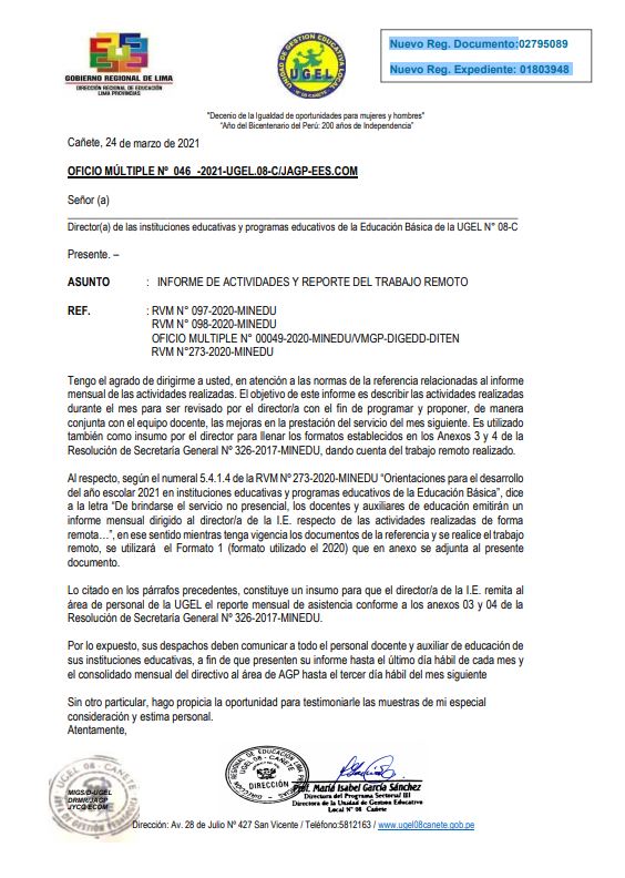 OFICIO MÚLTIPLE Nº 046 -2021-UGEL.08-C/JAGP-EES.COM