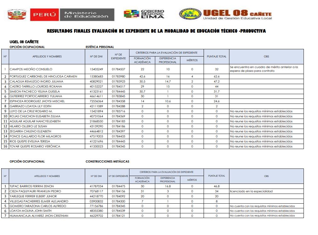 Leer mas...DESCARGAR RESULTADOS : https://drive.google.com/file/d/1SbSWanzMFZotyTeHHJdyLaDd51RE6WlN/view?usp=sharing