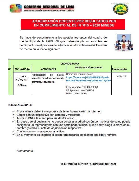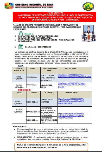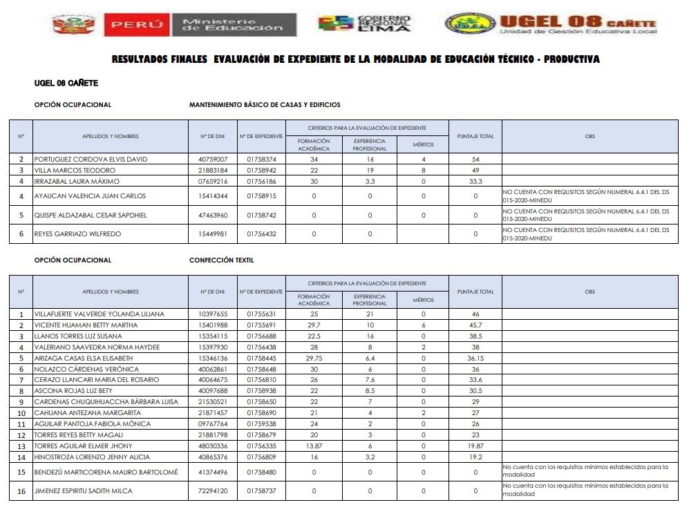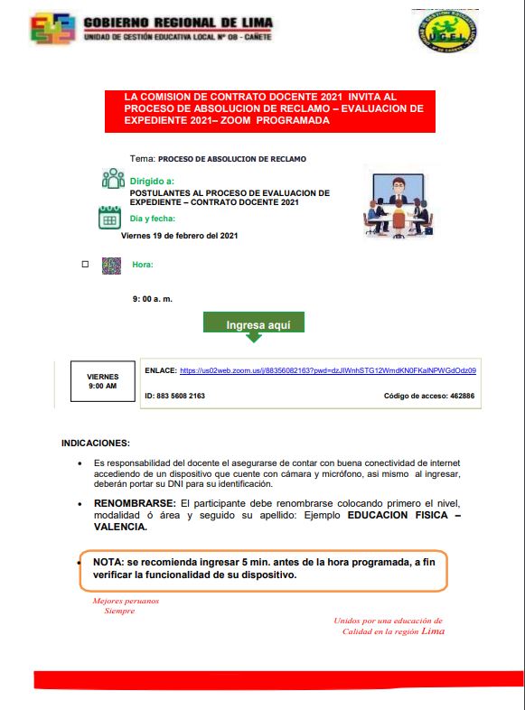 Jue, 25 de febrero, 2021 San Vicente Cañete.DESCARGAR RESULTADOS PRELIMINARES DE EVALUACIÓN DE EXPEDIENTE : https://drive.google.com/file/d/1CqCN_DvZX77IcIDkokhVhzPl-A0UAPYu/view?usp=sharing