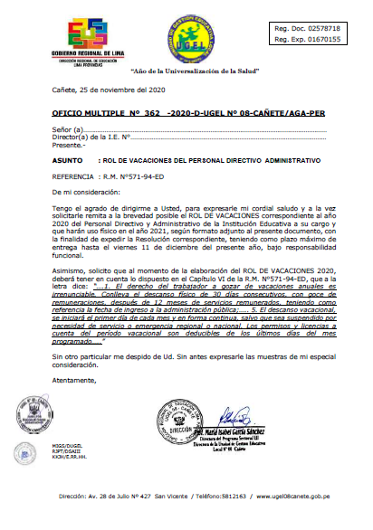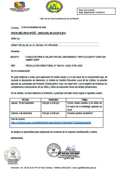 OFICIO MÚLTIPLE Nº -2020-UGEL.08-C/AGP-E.EI-II