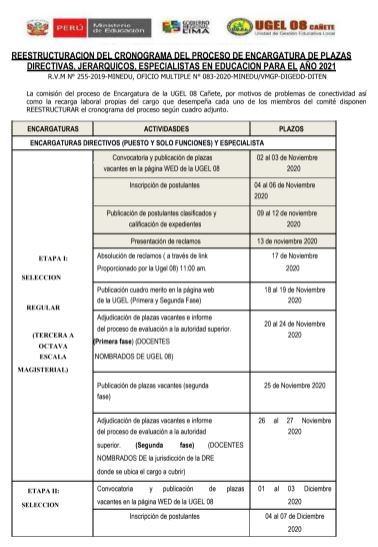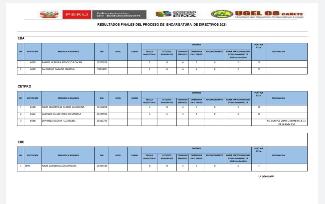 RESULTADOS FINALES DEL PROCESO DE ENCARGATURA 2021- UGEL 08 CAÑETE