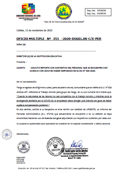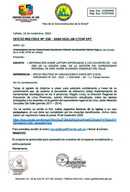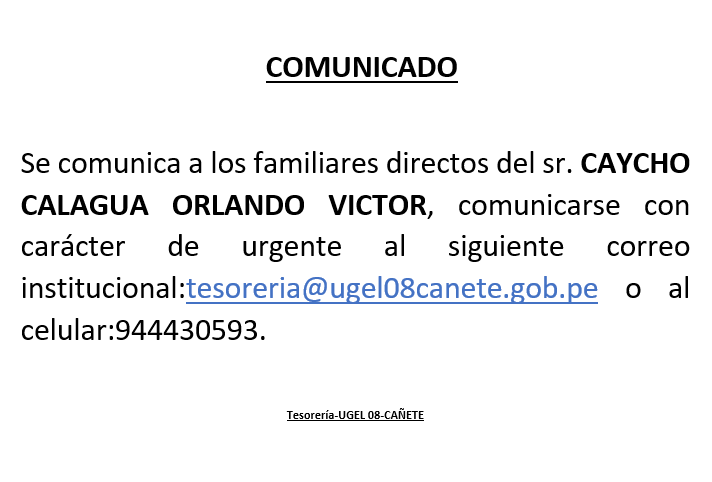 Jue, 19 de noviembre, 2020 San Vicente Cañete.RESULTADOS FINALES DEL PROCESO DE ENCARGATURA 2021- UGEL 08 CAÑETE DESCARGA RESULTADO PRIMARIA: https://drive.google.com/file/d/1ypTFjN0EbPDzAV3pBv9VU1HzvllxgxBW/view?usp=drivesdk DESCARGAR RESULTADOS INICIAL: https://drive.google.com/file/d/1ylSX-lx2JSY-LznBeaQKm9VyRZpx0tDN/view?usp=drivesdk DESCARGAR RESULTADOS SECUNDARIA: https://drive.google.com/file/d/1ynZSR1EF9un8OjdM_aVXAoUD8GO0DA_o/view?usp=drivesdk DESCARGAR RESULTADOS EBE EBA CETPRO: https://drive.google.com/file/d/1NTJGynlkMYjBmlGM1aceQJpcRK8_xkhG/view?usp=sharing