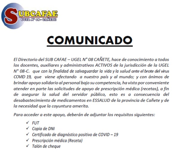 Mié, 8 de julio, 2020 San Vicente Cañete.Se comunica al postulante que se encuentra en el cuadro de mérito vigente del proceso de contrato de acompañante pedagógico del nivel inicial de la UGEL N° 08 – Cañete Descargar documento: https://drive.google.com/file/d/1as17INppdXgPfM2nXqtz_AnVfdnVfvYP/view?usp=sharing