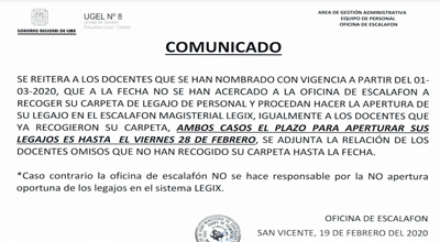 Mar, 25 de febrero, 2020 San Vicente Cañete.RESULTADOS PRELIMINARES DE LA EVALUACION DE EXPEDIENTES DEL PROCESO DE CONTRATACIÓN DE PERSONAL ADMINISTRATIVO PARA LA SEDE UGEL 08 – CAÑETE Descargar: https://drive.google.com/file/d/1j66a3A-SGvLhpTw30tAntVW6JzlXztFv/view?usp=sharing