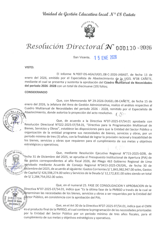 Mar, 20 de enero del 2026, 9:38 AM por UGEL 08 CAÑETEHacemos de conocimiento público la aprobación del Cuadro Multianual de Necesidades (CMN) 2026–2028.