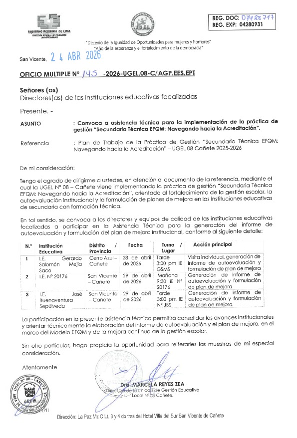Lun, 27 de abril del 2026, 3:08 PM por UGEL 08 CAÑETEDirectores(as) y equipos de calidad de las instituciones educativas focalizadas.