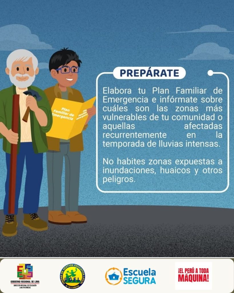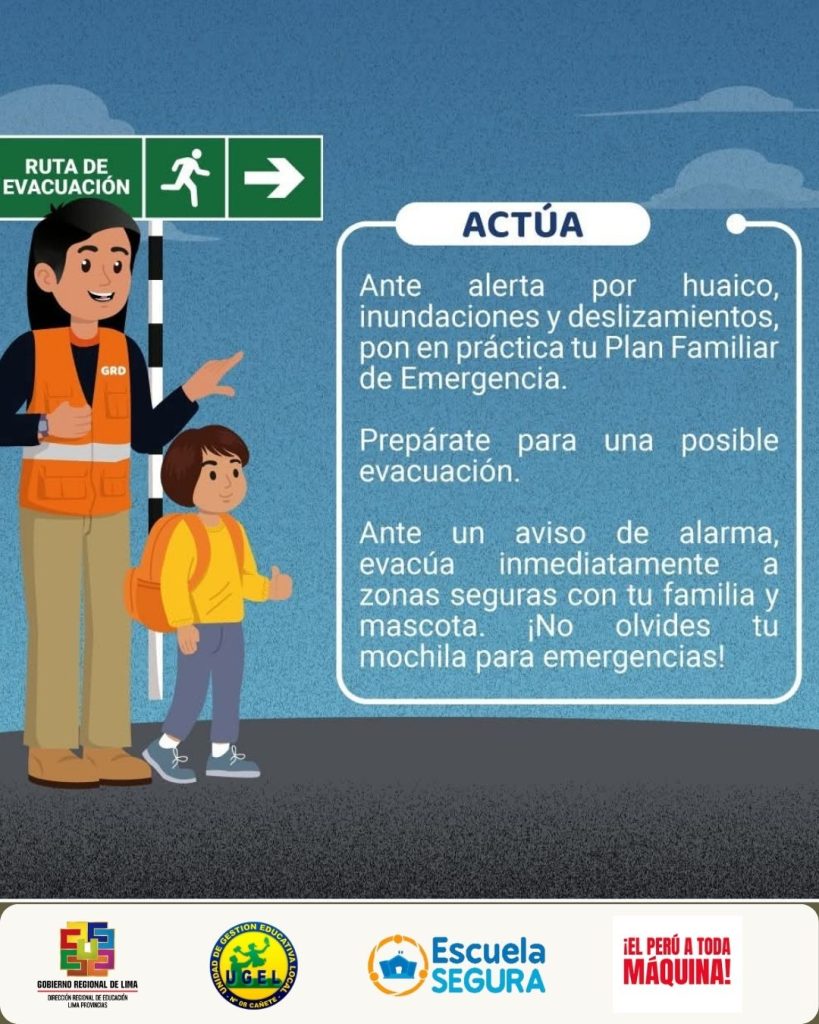 Vie, 23 de enero del 2026, 10:25 AM por UGEL 08 CAÑETE🚨🌧️Preparados ante las lluvias intensas, sigue las siguientes recomendaciones: